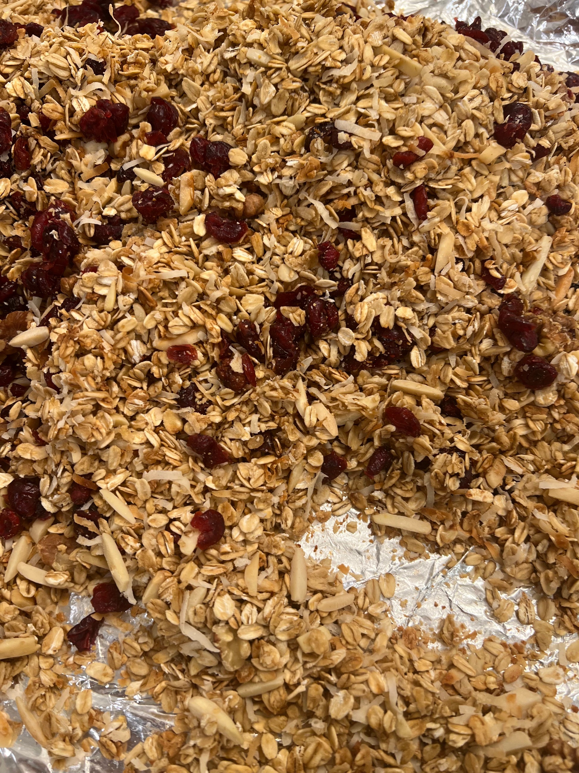 Golden-baked oats with toasted almond slivers, chopped walnuts, and a hint of coconut—sweetened just enough to let the natural flavors shine. Finished with dried cranberries for the perfect balance of crunch and chew in every bite.